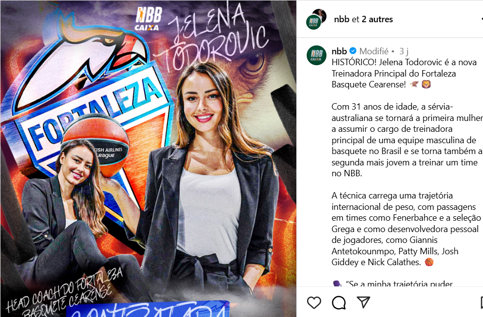 «Je suis pleinement déterminée à laisser une empreinte significative et durable sur le basket brésilien. Une empreinte qui dépasse les victoires et les défaites et touche le cœur de la communauté», a déclaré Todrovic dans un communiqué publié par la NBB.