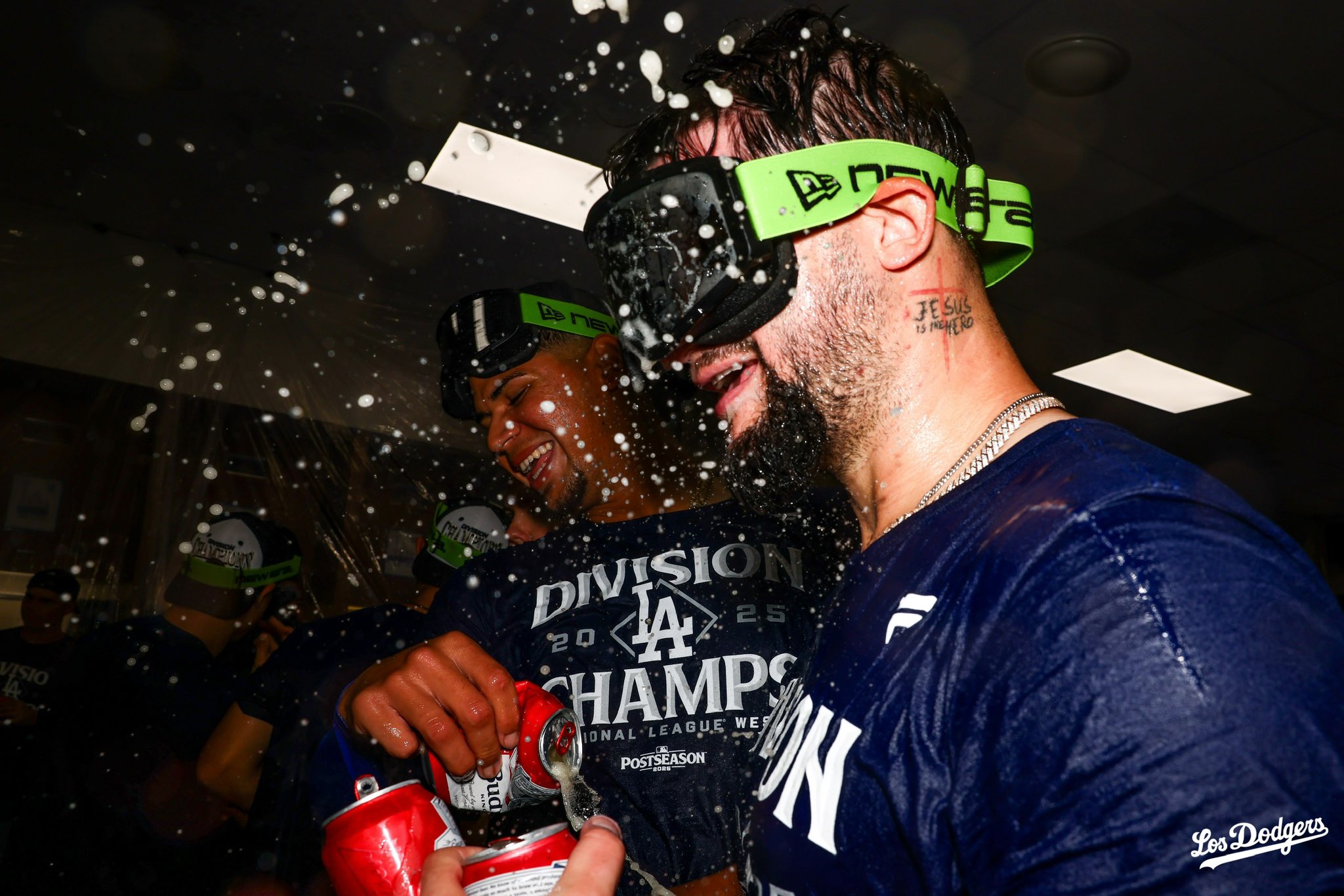 Même avec cette certitude, le vestiaire des visiteurs au Chase Field – qui avait été préparé depuis le matin, avec des pellicules de plastique de protection accrochées aux murs, attendant d’être déroulées – a été le lieu d’une célébration cathartique alors que les Dodgers célébraient leur 12e titre de division en 13 ans.