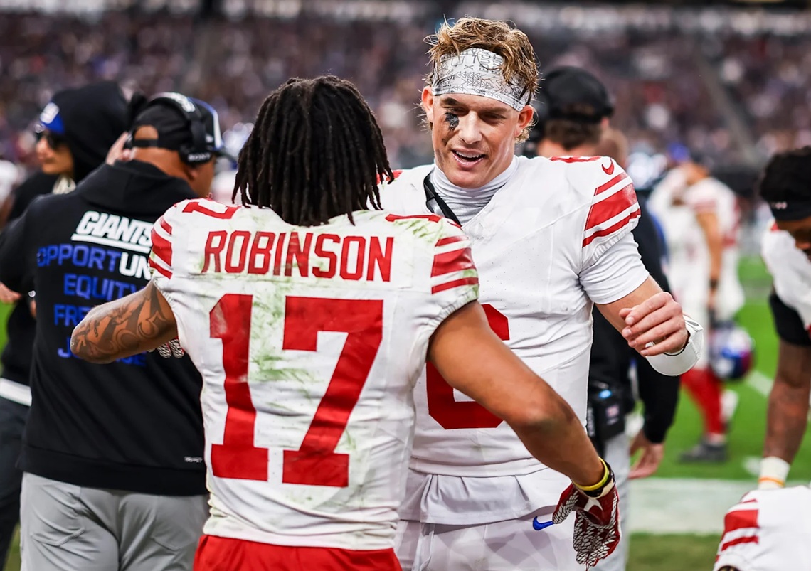 Jaxson Dart a inscrit deux touchés par la course, Deonte Banks a retourné un botté d’envoi ans la zone des buts, et les Giants de New York ont mis fin à une série de neuf défaites consécutives en s’imposant 34-10 chez les Raiders à Las Vegas.