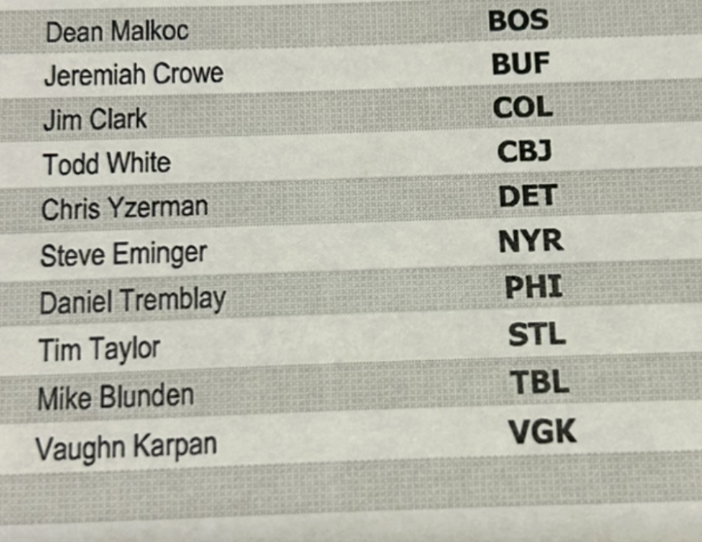 *Certains, comme le DG des Penguins de Pittsburgh, Kyle Dubas, peuvent assister sans que leur nom ne figure sur la liste des personnes présentes.