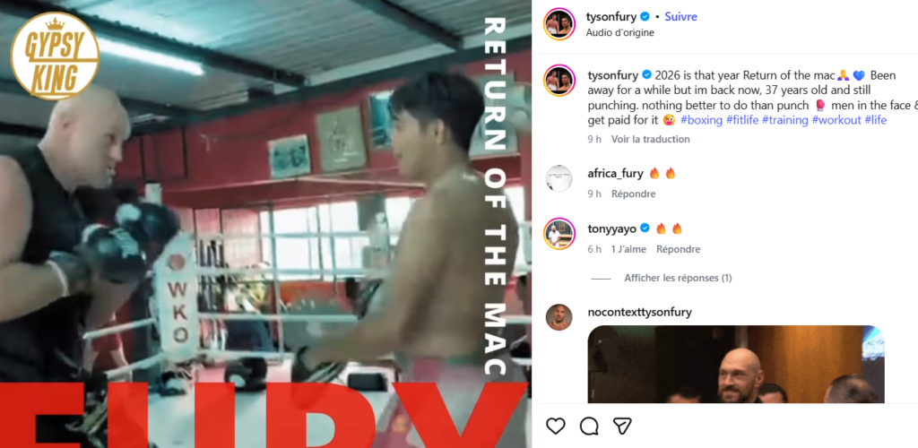 «2026, c’est cette année-là. (Le) retour du mac. Je suis absent depuis un moment, mais je suis de retour maintenant. 37 ans et je suis toujours en train de cogner. Rien de mieux à faire que de frapper les hommes au visage et d’être payé pour ça», a-t-il écrit.