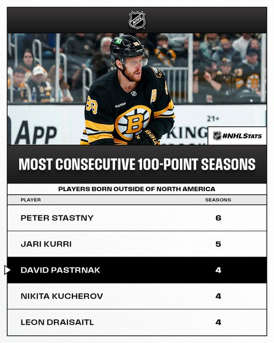 L’attaquant David Pastrnak a totalisé 100 points (29 buts, 71 passes décisives) pour la quatrième campagne de suite et Morgan Geekie a mené l’effectif avec 39 buts.